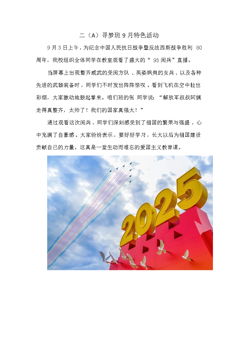 二(A)寻梦班9月特色活动