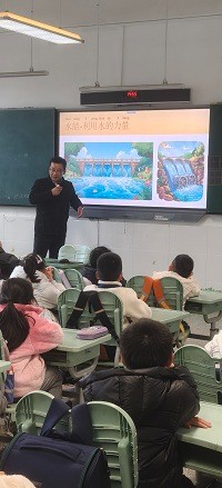 “太阳能板为什么能发电呀?”“风能怎么让风车转起来呢?”从事新能源行业的王冠儒爸爸化身“科普老师”,用趣味十足的方式带孩子们走进绿色能源的奇妙世界。课堂中,王冠儒爸爸结合PPT动画、实物模型和简单实验,让抽象的科学知识变得直观易懂,孩子们在玩乐中记住太阳能、风能、水能、生物质能、地热能等新能源形式。