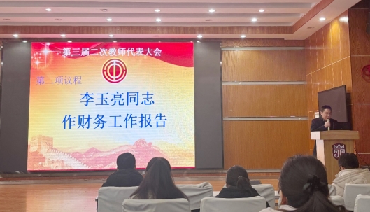 第二项议程,由李玉亮主任宣读学校财务工作报告,详细汇报了经费收支情况。他表示,学校财务部门将继续严守财经纪律,确保规范管理,实现财务透明,助推学校高质量发展。
