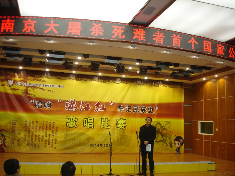12月11日,将军山小学为纪念“南京大屠杀死难者首个国家公祭日”,隆重开展“唱响《满江红》,牢记民族史”主题歌咏比赛活动。