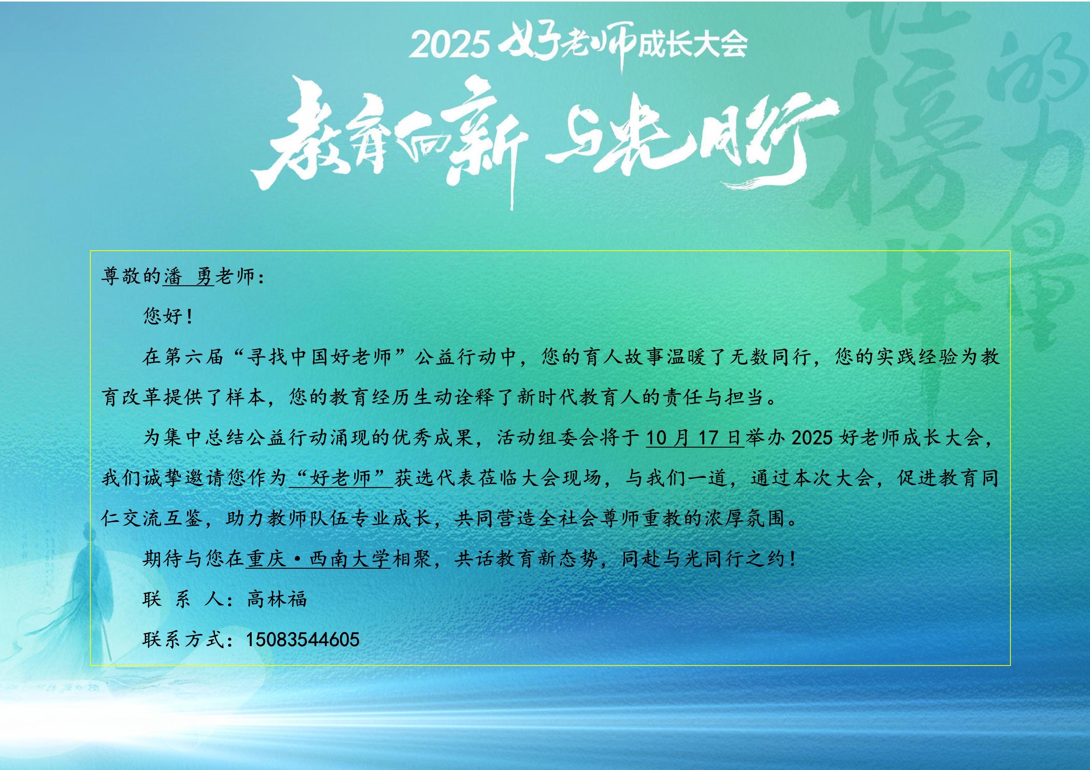潘勇老师受邀参加“2025好教师成长大会”