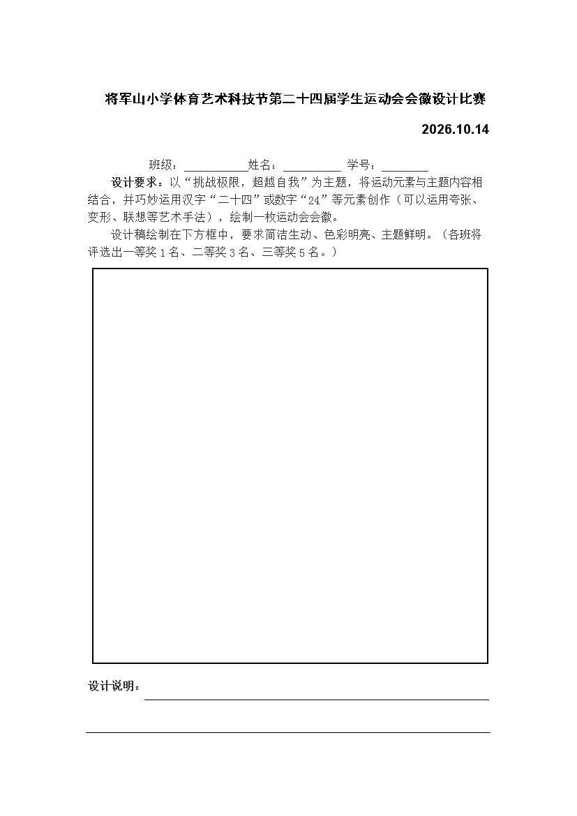 将军山小学第二十四届体育运动会会徽设计比赛方案