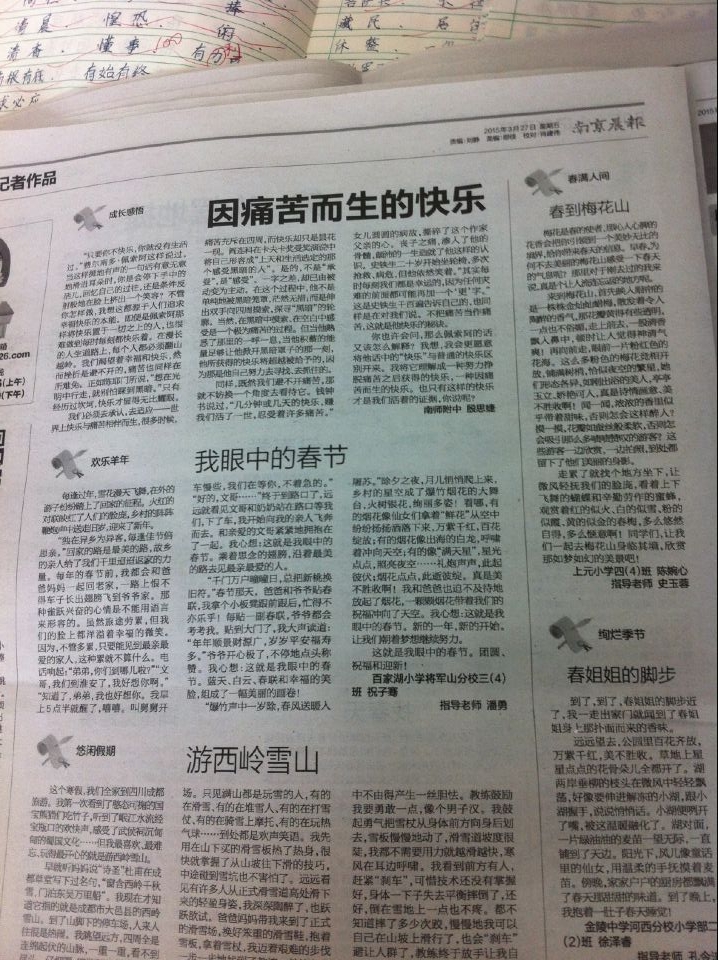 小将军班子骞将军习作《我眼中的春节》发表于《南京晨报》