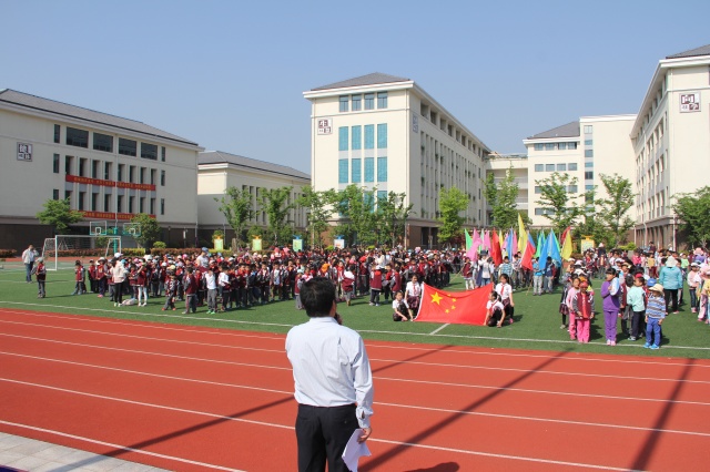 举行的庄重的升旗仪式上:首先是升国旗仪式:升国旗、奏唱国歌;接着在校运会中首次举行了升校旗和第四届学生运动会会旗仪式、同时奏唱《满江红》曲;我校于斌校长随后发表了热情洋溢的致开幕词,并带领全校师生共同喊出“每天锻炼一小时,健康工作五十年,幸福生活一辈子”的运动口号,动员大家都加入到运动中来,通过运动拥有一个强健的体魄。精彩的发言赢得阵阵掌声。在运动员代表和裁判员代表宣誓过后,于斌校长宣布:南京市百家湖小学分校将军山小学第四届学生运动会开幕。